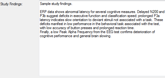 After analyzing the data from the Patient Report, enter Study Findings into the box.